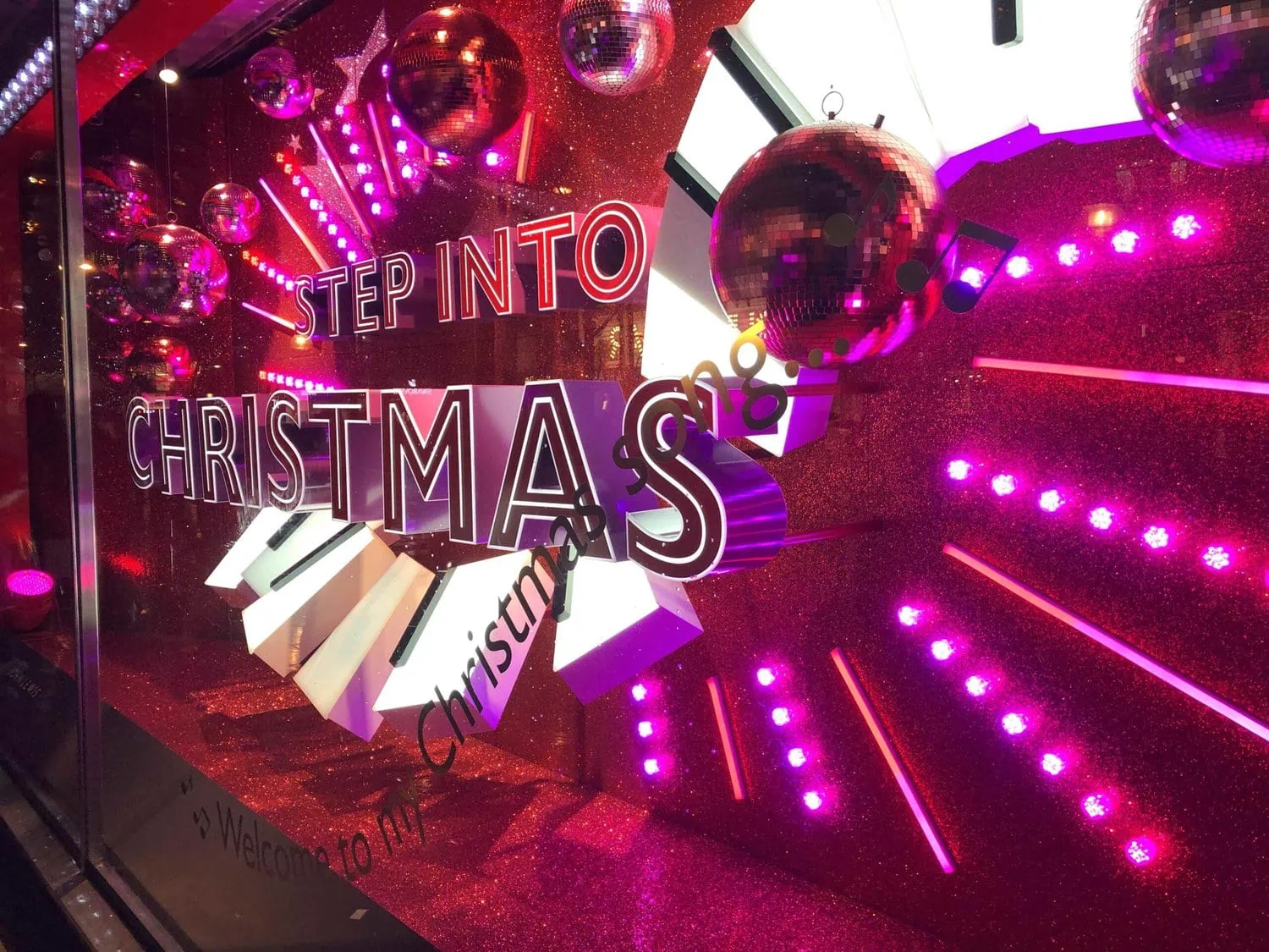 Therefore, the theme of their windows was to not only highlight their merchandise, but they also wanted to add a flavour of Elton! The main concept was to have a set of piano keys running throughout their main window display, interspersed with gifts, records. This was all set to music and combined with the caption, ‘Step into Christmas’.